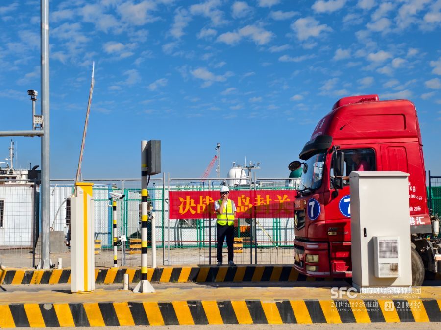 12月18日,三亞南山港區(qū)首批出島貨物駛?cè)氡O(jiān)管卡口。拍攝:張旭