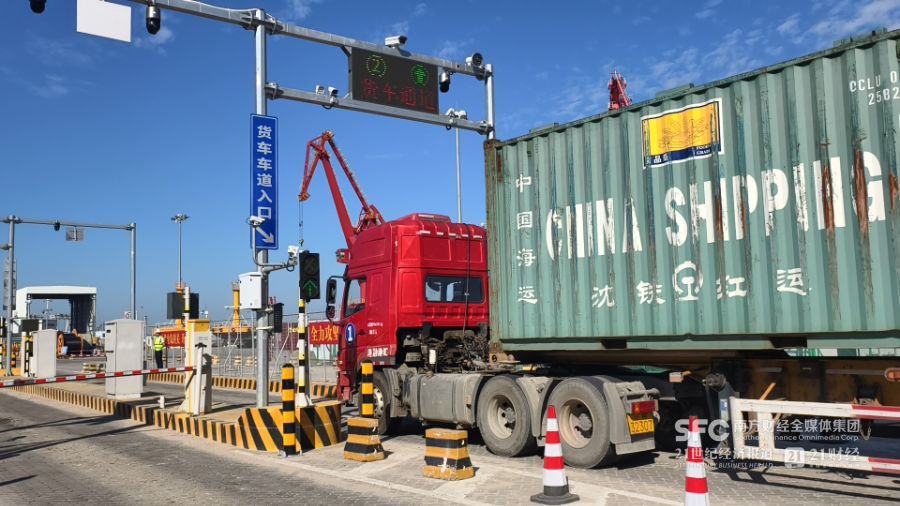 12月18日,三亞南山港區(qū)貨車正在通關(guān)。拍攝:張旭