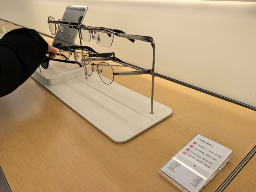 商場(chǎng)內(nèi)陳列的智能眼鏡產(chǎn)品。(冉黎黎/圖)